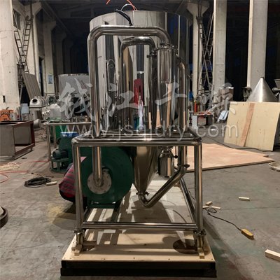 小型噴霧干燥機(jī)的蠕動泵用于將液體從一個容器輸送到安裝在干燥室上的2個流體噴嘴。來自壓縮機(jī)的壓縮空氣被供應(yīng)到噴嘴,這導(dǎo)致流體霧化成精細(xì)噴霧。鼓風(fēng)機(jī)中的空氣通過干燥室吹風(fēng)的電熱空氣加熱器得到加熱。由于表面面積大,會降低溫度,所以干燥非常快。在旋風(fēng)分離器中,干粉顆粒從玻璃收集瓶中分離出來。而且,排出的空氣通過柔性SS管釋放到大氣中。除此之外,根據(jù)客戶的要求,還提供袋式過濾器用于二次粉末收集。