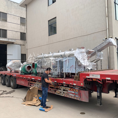 由于業(yè)務需要,重慶某客戶在我公司(常州市錢江干燥設備工程有限公司)訂購了雞精生產(chǎn)線,今日已完成裝車并發(fā)貨,發(fā)貨現(xiàn)場圖如下。