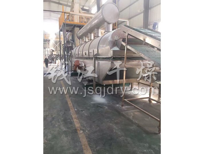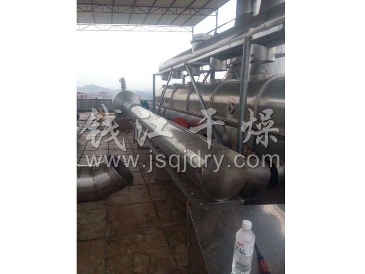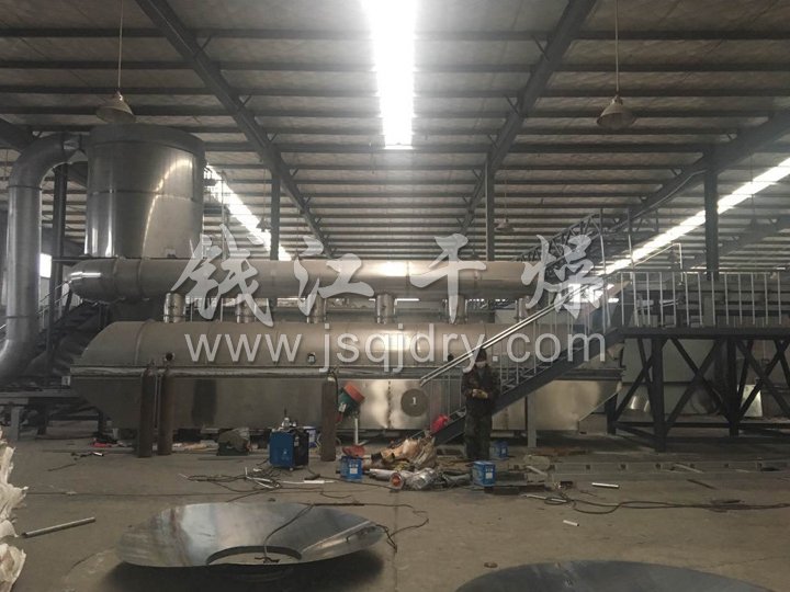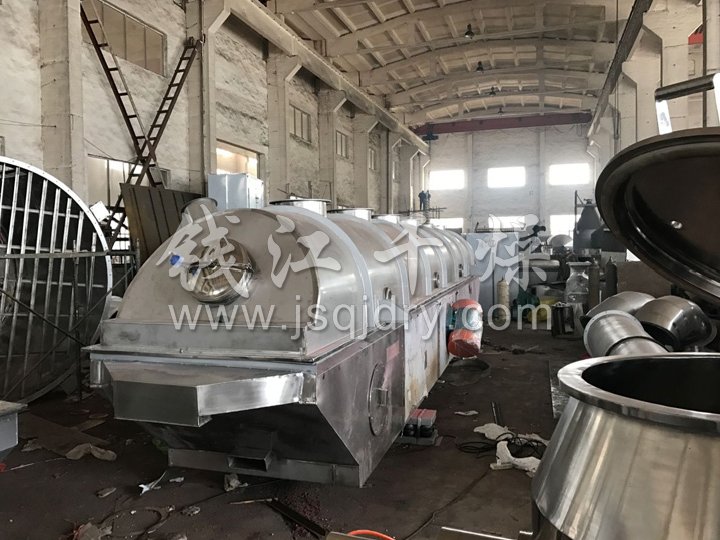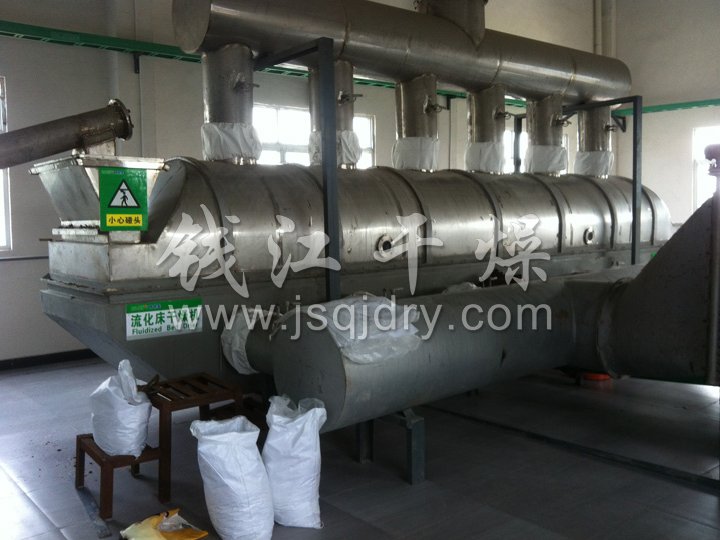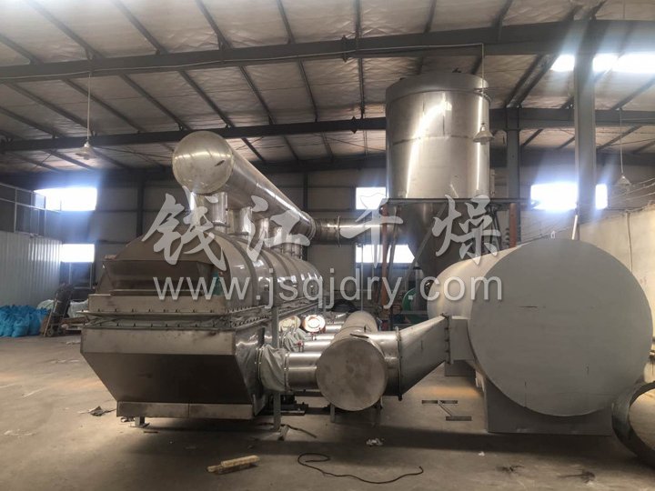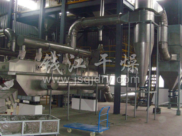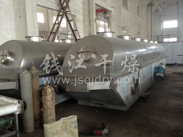 ZLG系列振動流化床干燥機原理是物料自進料進口進入機內,在振動力作用下,物料沿水平面流化床拋擲,向前連續(xù)運動,熱風向上穿過流化床同濕物料換熱后,濕空氣經(jīng)旋風分離器除塵后由排風1:3排出.干燥物料由排料進口排出。