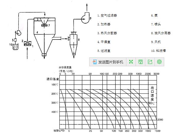 ◎干燥速度快,料液經霧化后表面積大大增加,在熱風氣流中,瞬間就可蒸發95%-98%的水份,完成干燥時間僅需數秒鐘,特別適用于熱敏性物料的干燥。